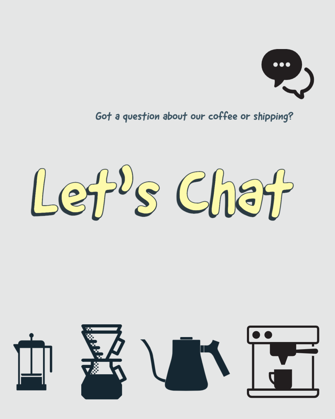 Send us your queries from our website "chat with us" function, our roasters Matty & Po will get back to you as soon as possible, if they are not online, you will get an email response.